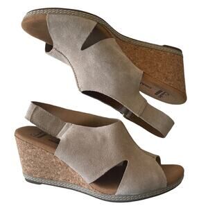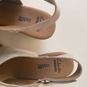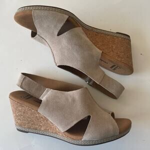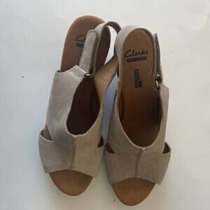 Clarks Collection Tan Suede Soft Cushion Wedge Sandals w Ankle Buckle - Size US 9.5 (UK 7) & EUR 41