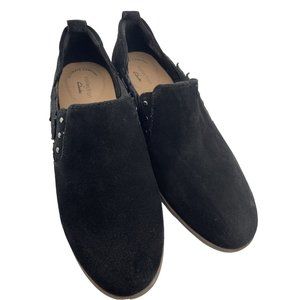 Clarks Collection Trish Bell Studded Black Suede Booties Women's Size 8.5