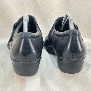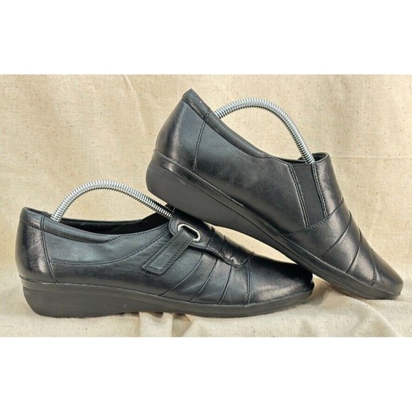 Clarks Collection Women 10 Black Leather Everlay Coda Slipon Casual Loafer Strap