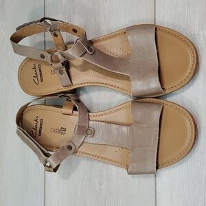 Clarks Collection Women Comfort Cushion Soft Heels Leather Sandals shoes sz 8.5M