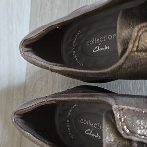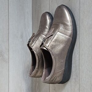 Clarks Collection Women Metallic Slip-On Shoes with Zipper Cushio Feel Sz 9M
