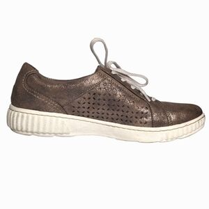 Clarks Collection Caroline Ella Sneakers Leather Textile Perforated Casual Metallic Bronze Women's Size 9.5M