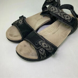 Clarks Collection Womens 8.5 Black Amanda Sprint Flat Sandal Hook and Loop