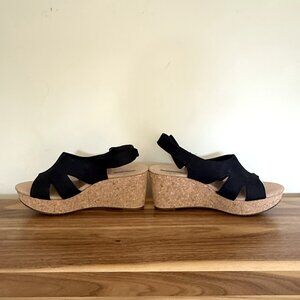 Clarks Collection Women's Annadel Bari Wedge Sandals 8.5W NWOT black suede