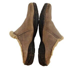 Clarks Collection Womens Brown Leather & Faux Fur Slip-On Clogs Slippers Size 6