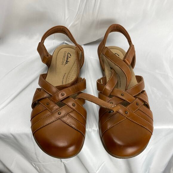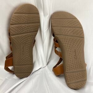 Clarks Collection Women's Comfort Fisherman Sandals Tan Leather Size 8 L:9.5"