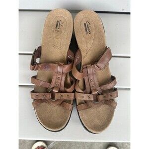 Clarks Collection Women's Hayla Theme Slip On Leather Sandals Slippers Shoes 12