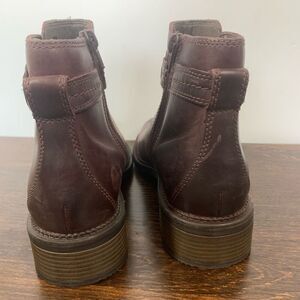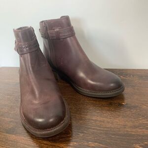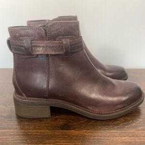 Clarks Collection Women's May Ease Leather Ankle Side Zip Boots Maroon Size 8