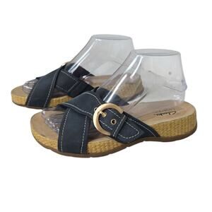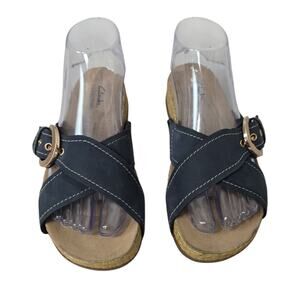 Clarks Collection Womens Reileigh May Slide Sandals Size 7 M Blue Nubuck Buckle