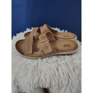 Clarks Collection Women's Size 8 Brown Open Toe Wedge Strap Sandals Slip On