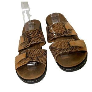 Clarks Collection Womens Size 9 Slide Sandals Lexi Snake Print Beige Tan Hook &