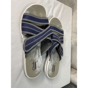 Clarks Collection Women's Slide Sandals Navy Gray Adjustable Straps Comfort