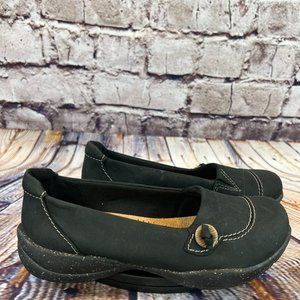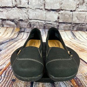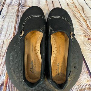 Clarks Collection Women's Solid Black Leather Closed Toe Slip On Flats 5.5 M