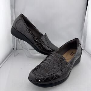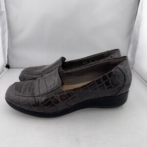 Clarks Collection Women's Sz 6M Gael Angora Brown Patent Croc Embossed Comfort