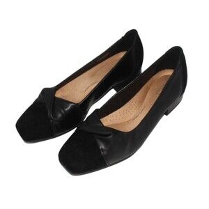 Clarks Collection Womens Tilmont Dalia Flats Size 8 M Black Faux Leather Suede