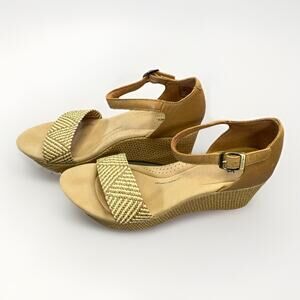 Clark’s Collection Women’s Wedge Sandal Woven Toe Strap, Ankle Buckle Size 10