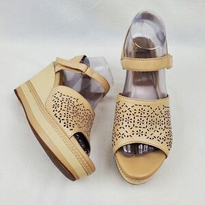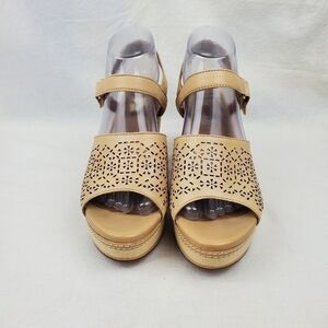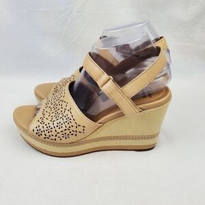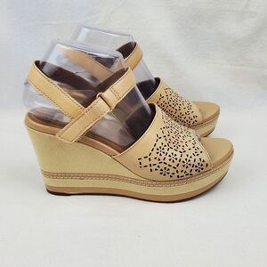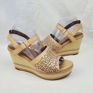 Clarks Collection cream/ tan leather wedge sandals size 8.5 M