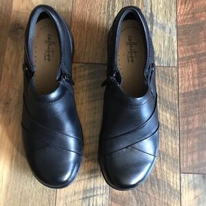 Clarks Collection women’s Size 7.5 side zip leather button Ultimate comfort New