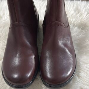 Elegant ankle boots by Clarks collection cushion . Rich burgundy color. Sleek and stylish design. Perfect for any occasion.size 9 NWOT