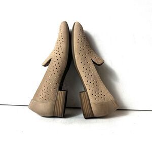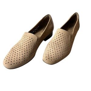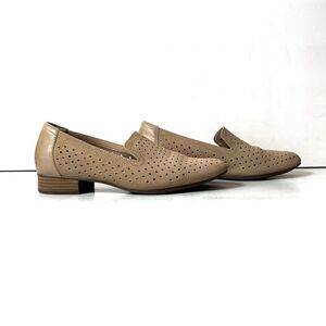 Clarks Collection Women 8M Comfort Casual Beige Leather Slip On Perforated Flats
