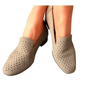 Clarks Collection Women's Size 8M Comfort Casual Beige Leather Slip On Perforated Flats