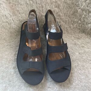 Clarks College Navy Blue Synthetic suede platform wedge straps Sandals Size 10W