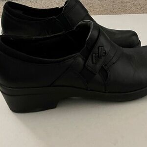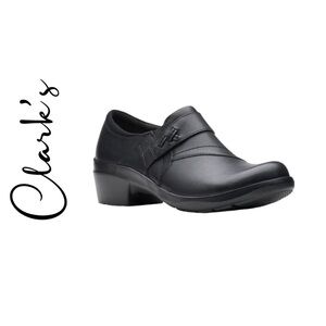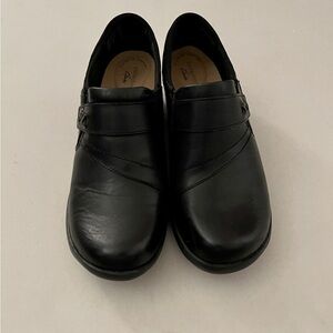 Clarks Comfort Angie Pearl Slip On Black Leather Clogs Loafers