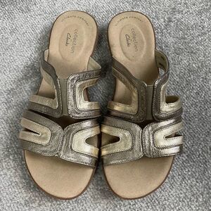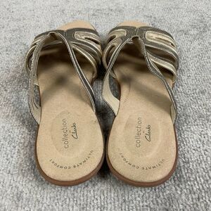 Clarks Comfort Collection Women’s 7.5 Strappy Slip on Slides Sandals Tan
