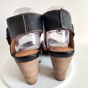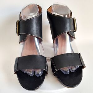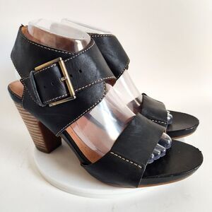 Clarks Comfort Sandals Size 9 Leather Block Heel Open Toe Black Okena Mod Buckle
