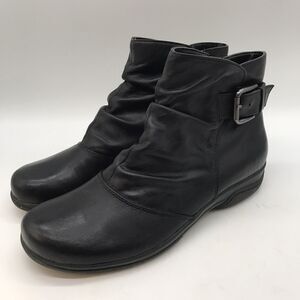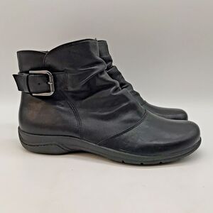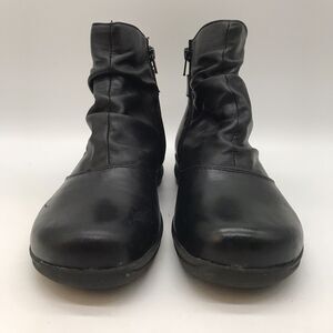 Clarks Cora Rouched Ankle Boots Women's 9M Black Leather Side Zip Bootie 39235