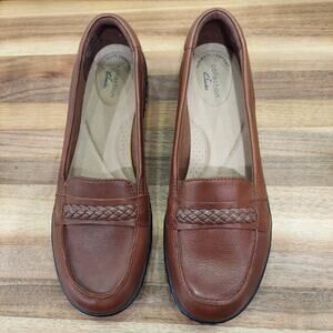 Clarks Cora Viola Size 8 Shoes Brown Slip-on Comfort Loafers Braided Detail
