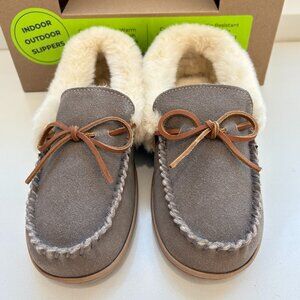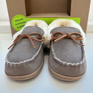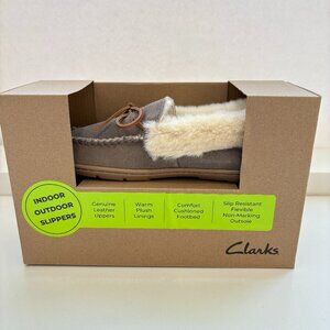 NEW Clarks Cozy Moccasin Slippers Suede Faux Fur Indoor Outdoor Brown Size 7 NIB