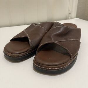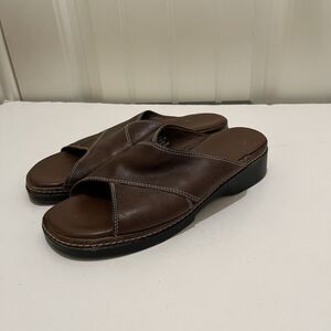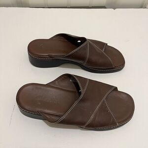 Clarks Criss Cross Brown Leather Slip On Slides Sandals Womens Size 8M VTG 2003