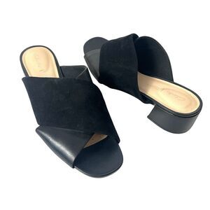 Clarks Cushion Womens Sz 9 M Comfort Casual Sandals Black Suede Leather Open Toe