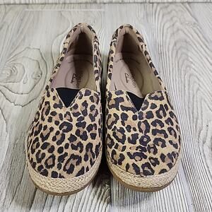 Clarks Danelly Sky Leopoard Print Espadrille Slip On Flats Womens Size 6 NEW