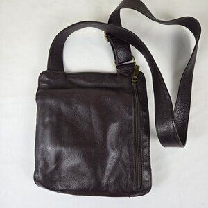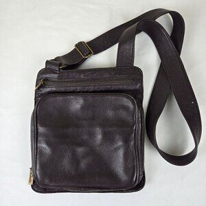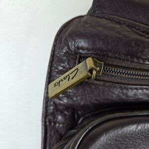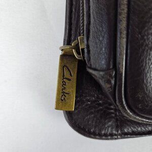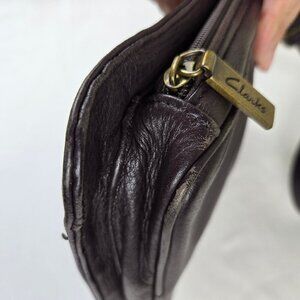 Clarks Dark Brown Leather Crossbody Bag Zippered Sections Adjustable Strap