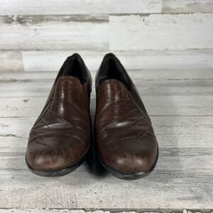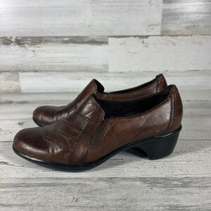 Clarks Dark Brown Leather Slip On Loafer Wedge Pump Dress Work Women Shoes 6.5M