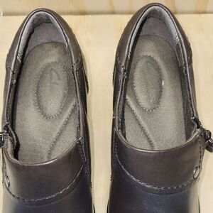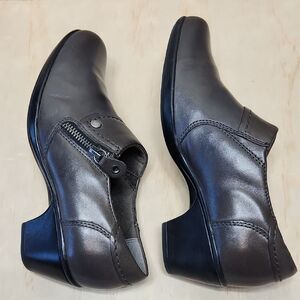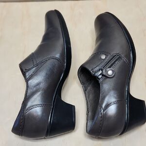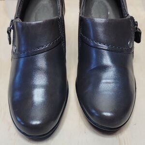 Clarks Dark Gray Heeled Ankle Boots Women 6.5 Leather Shoe Zipper Booties