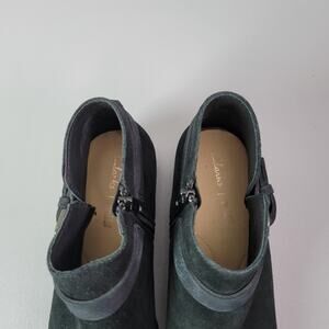 Clarks Demi Tone Womens Ankle Boot Black Suede Side Zip US Size 8.5
