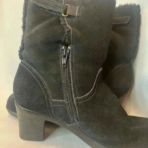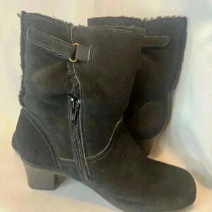 Make a splash. Rain or shine, these sassy, water-resistant boots keeps you at the forefront of fall fashion! With a detailed closure and faux fur lining, this trend-right design is where fabulous meets function. These are great, you can wear them up or rolled down, really cute and comfy too.