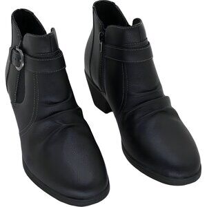 Clarks Emily 2 Opal Black Leather Ankle Boots Buckle Zip Women's US 8M
