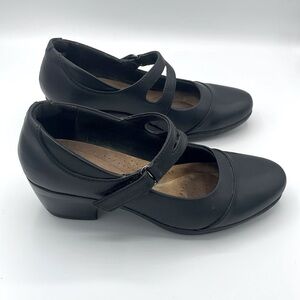 In good pre-owned condition. Inside is more worn due to the removal of some padded insoles that were added. Some scuffs and marks to the heels. Still lots f life left in these cute shoes. Please refer to all pics.