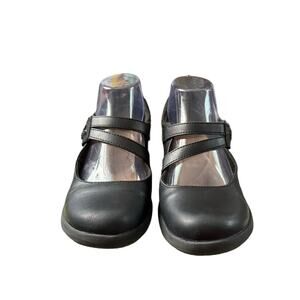 Clark’s Mary Jane’s Emily Clover women’s size 8, casual black pump shoe. 1” heel. These have underfoot cushion, breathable u doles! These are previously owned but in excellent condition. Thanks for checking out my listing.