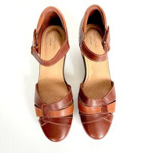 Clarks Emily Daisy Maryjane Brown Leather Ortholite Sandal Pumps Size 9.5