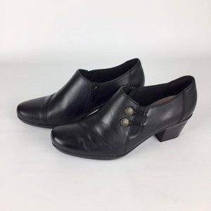 Clarks Emslie Warren Black Button Zip Ankle Bootie 9.5