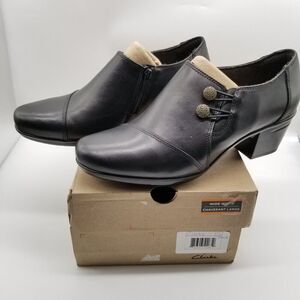 Clarks Emslie Warren Boot Women's Size 10 W Block Heel Black Leather Bootie