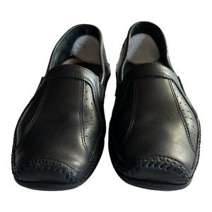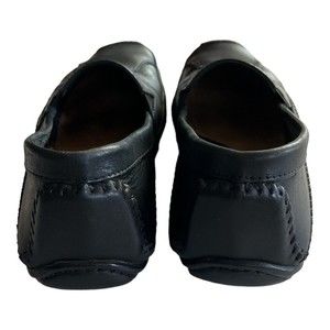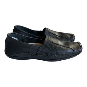 Clarks England Mens Driving Loafers Black Leather Shoes Moc Toe Slip On Square Toe