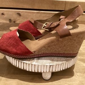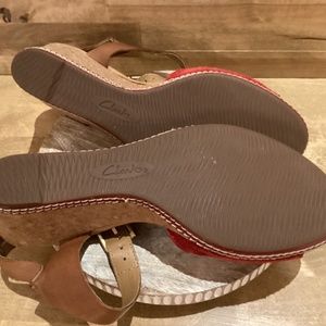 Clarks Espadrille Cork Wedge Sandal w/Red Suede Leather Upper Size 8.5 M