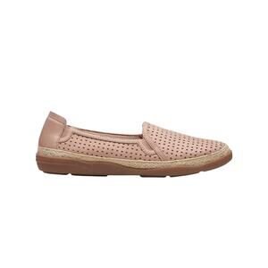 Espadrille details and punchy perforations lend breezy attitude to the easy slip-on design of the Elaina Ruby flats from Clarks.