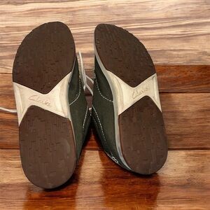 Elegant green loafers by Clarks. Perfect for casual wear. Durable and stylish.